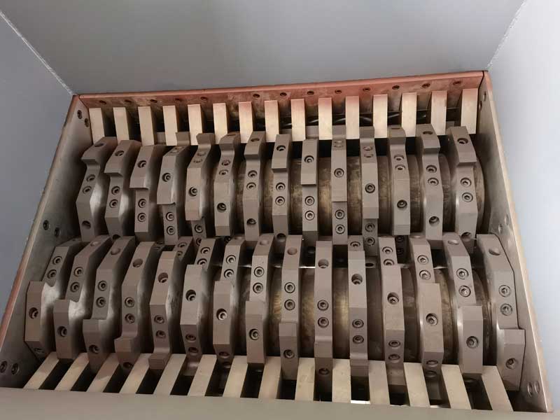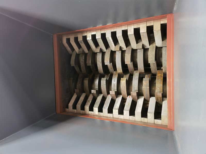 It uses two counter-rotating shafts equipped with high-strength blades to tear and shear materials into smaller pieces without overheating or wrapping.
