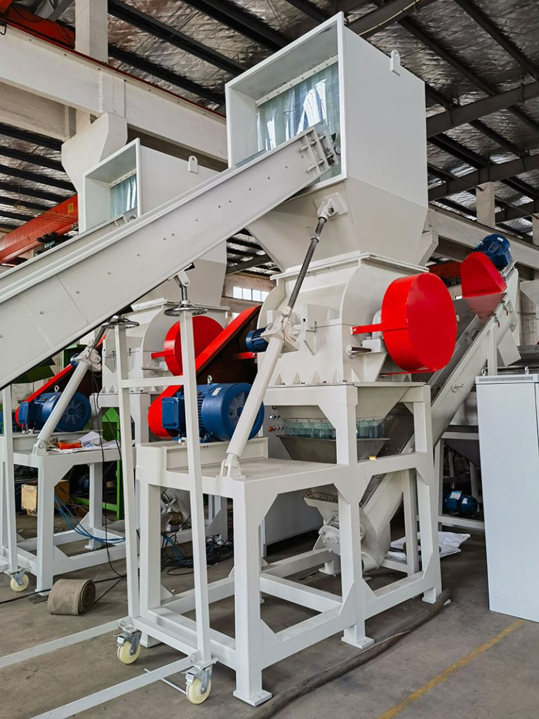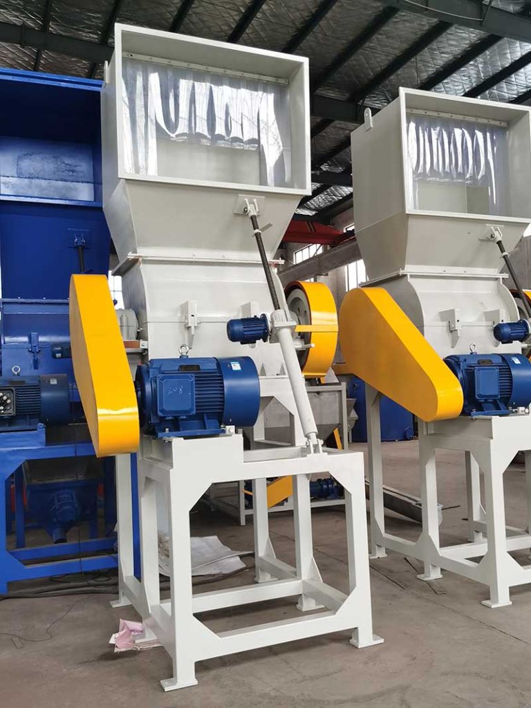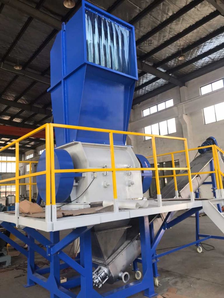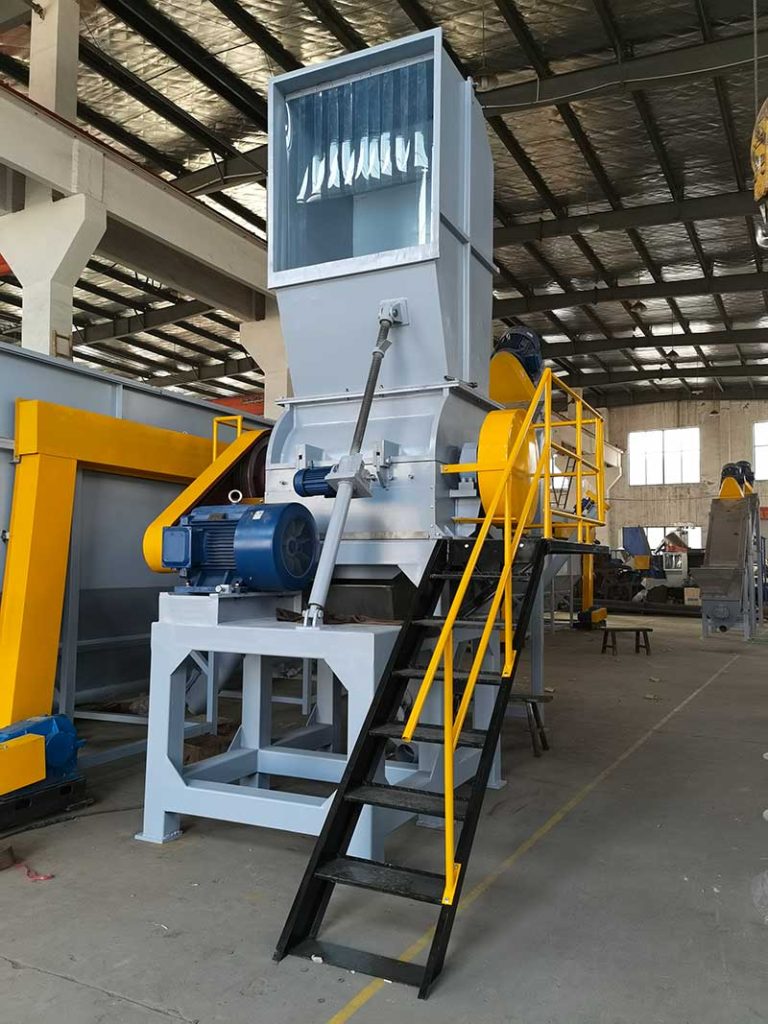 The Crusher is used to cut waste PE/PP films, woven bags, or rigid plastic containers into small, uniform flakes for efficient washing and drying.