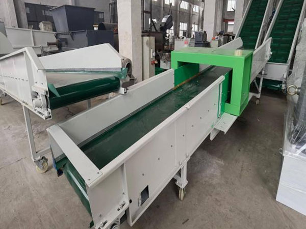 The sorting table is a conveyor platform where workers manually inspect and remove unwanted materials such as metals, PVC bottles, colored bottles, and other non-PET contaminants. By eliminating impurities at this stage, the sorting table ensures that only suitable PET bottles enter the crusher. This improves the safety of the line, protects equipment from damage, and enhances the quality of the final PET flakes.
